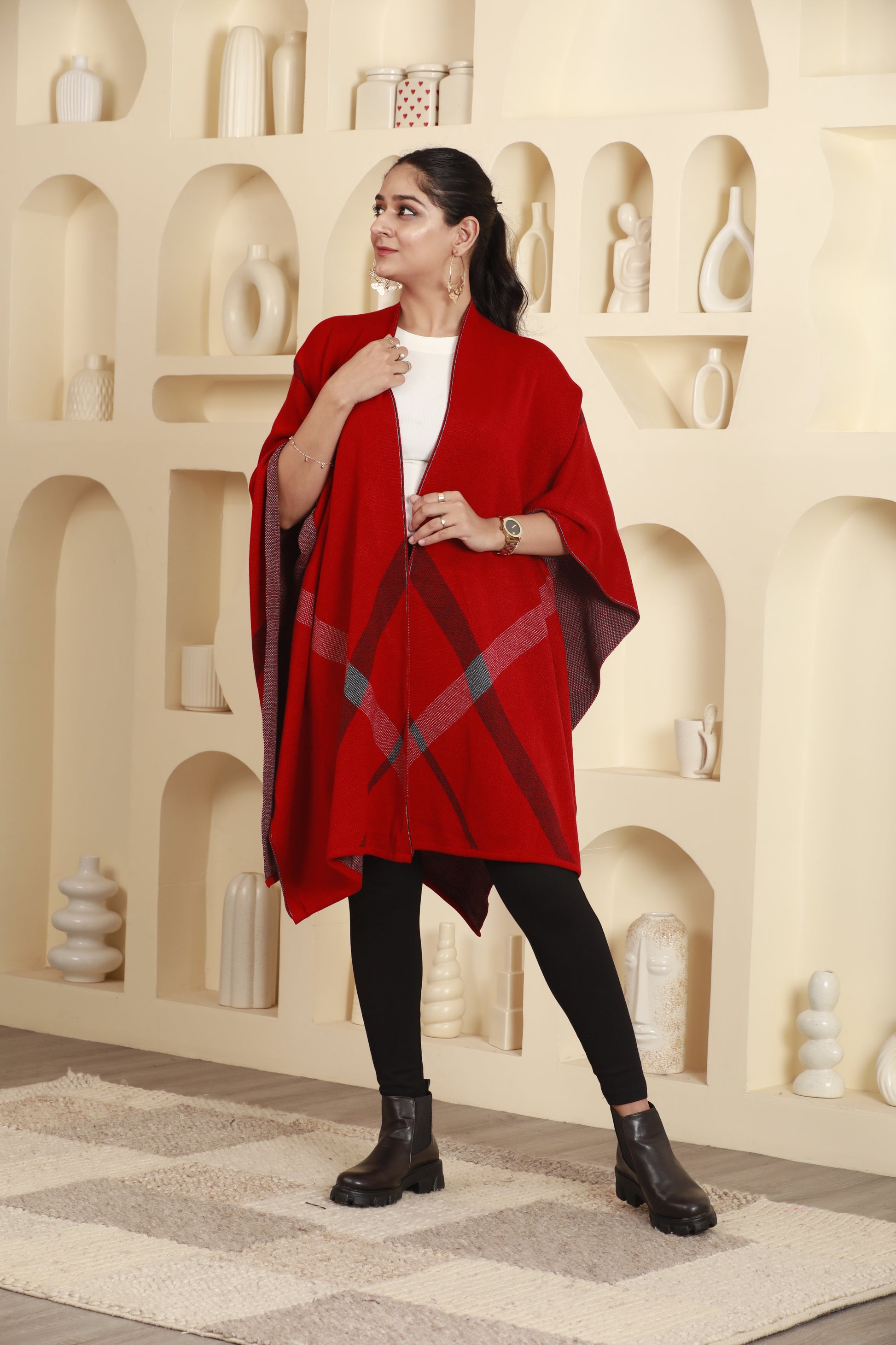 The Crimson Vector Cape blends statement color with contemporary structure. Its vivid red base instantly elevates any look, while the subtle geometric lines add depth without overwhelming the silhouette. Designed to drape with ease and presence, it’s ideal for women who appreciate confident styling and clean minimalism with an engineered edge.