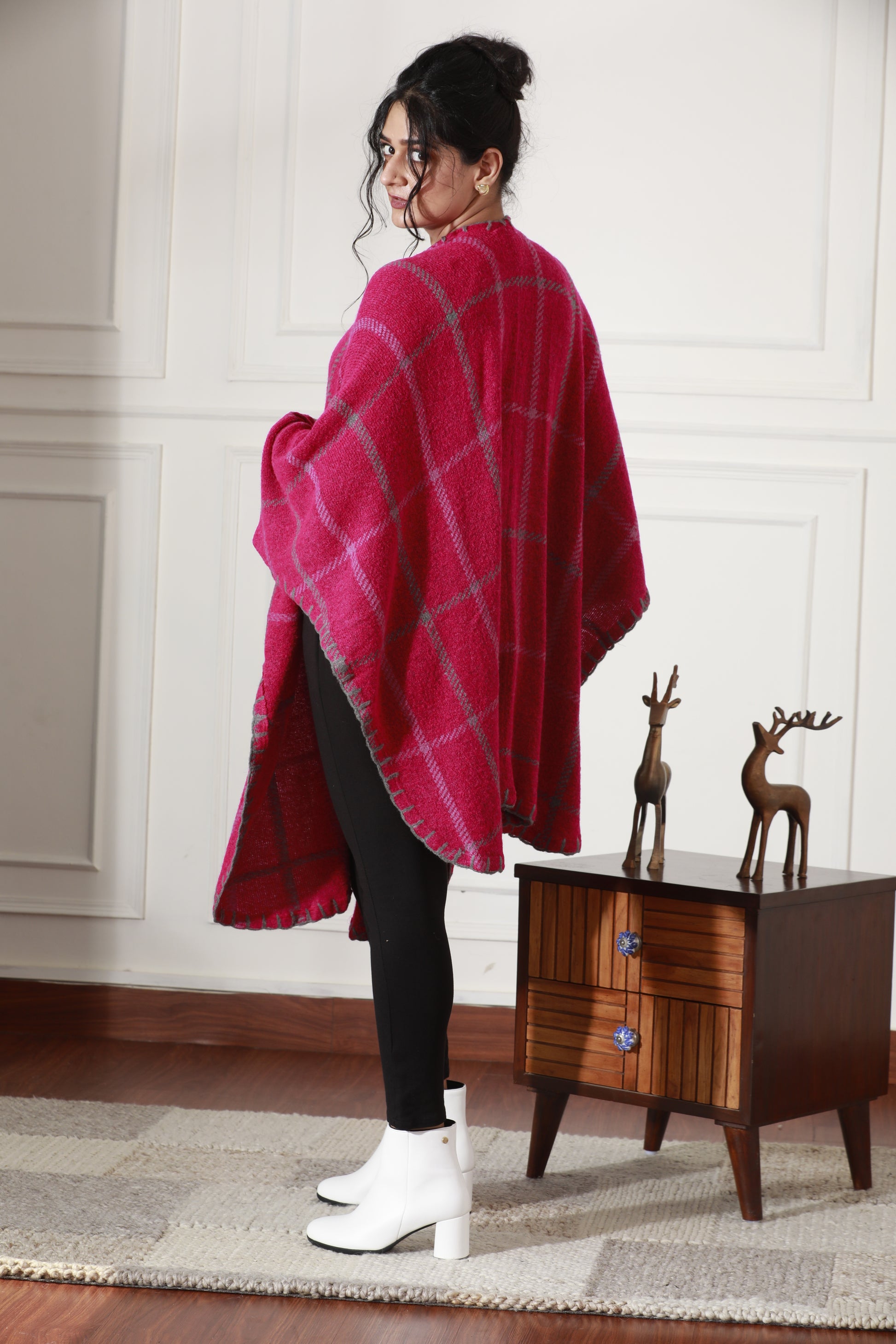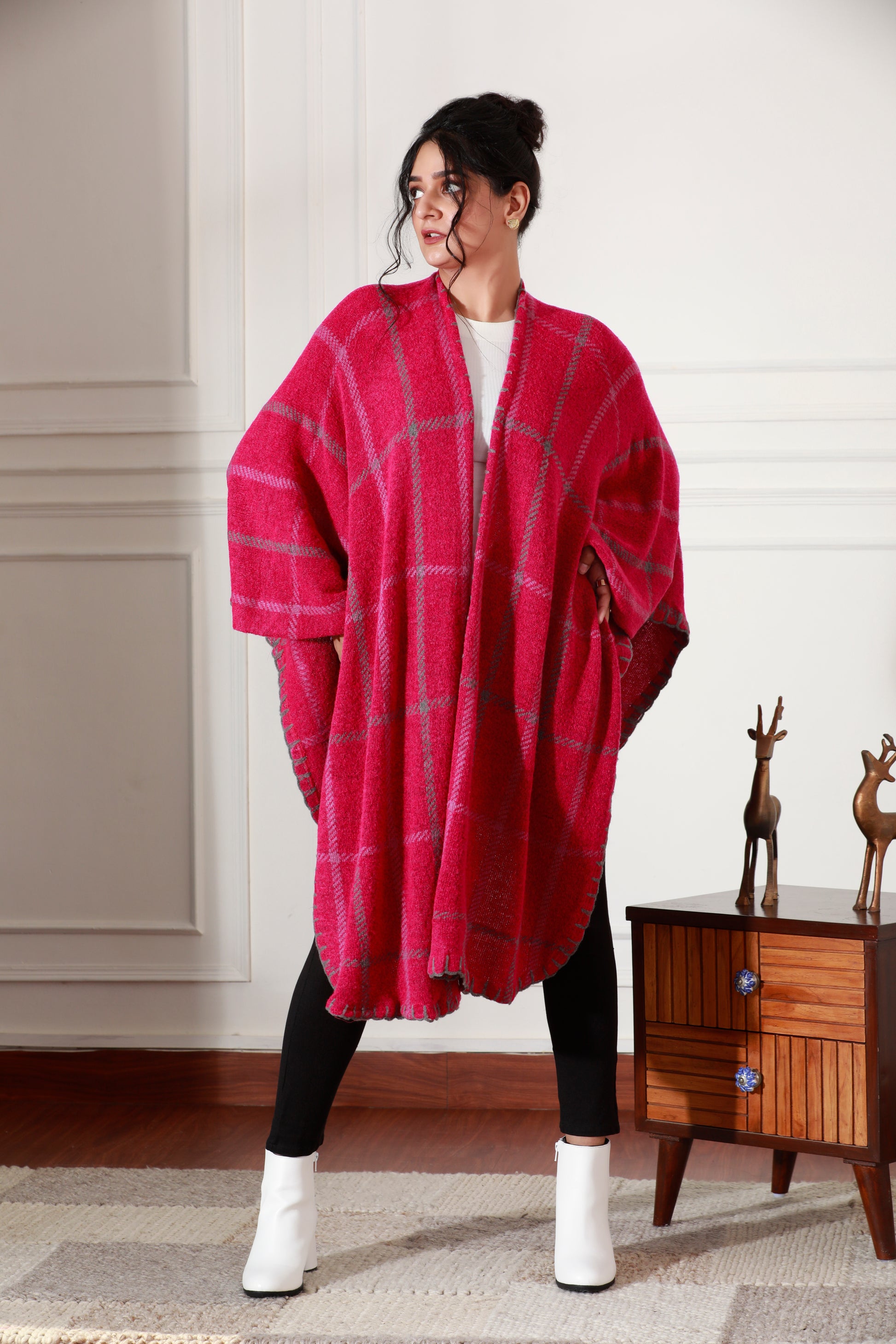 The Crimson Grid Luxe Cape stands out with its rich red tone softened by broad, contemporary check lines. Designed to drape effortlessly, it creates a statement silhouette without feeling heavy. The cape offers a refined balance of bold color and everyday practicality — perfect for women who want their winter layers to feel confident, stylish, and unmistakably premium.